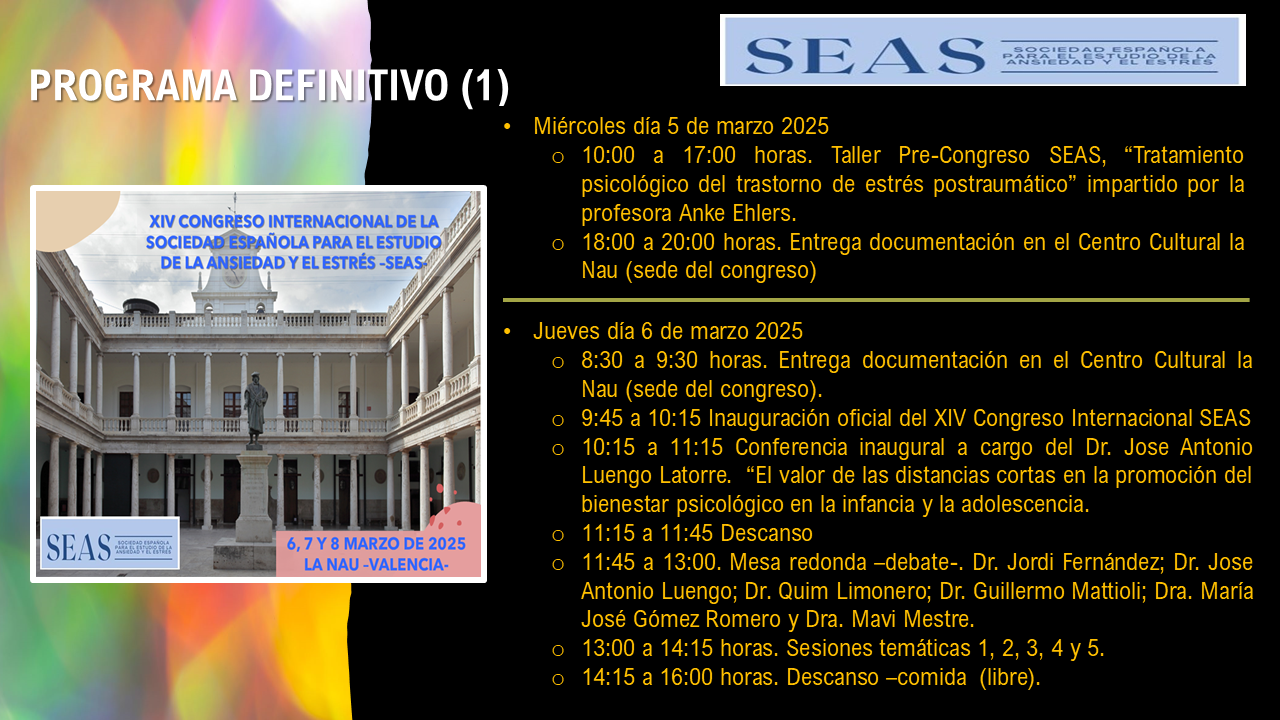 Bienvenida al XIV Congreso Internacional de la Sociedad Española para el Estudio de la Ansiedad y el Estrés (SEAS). Carta de los Presidentes del Congreso