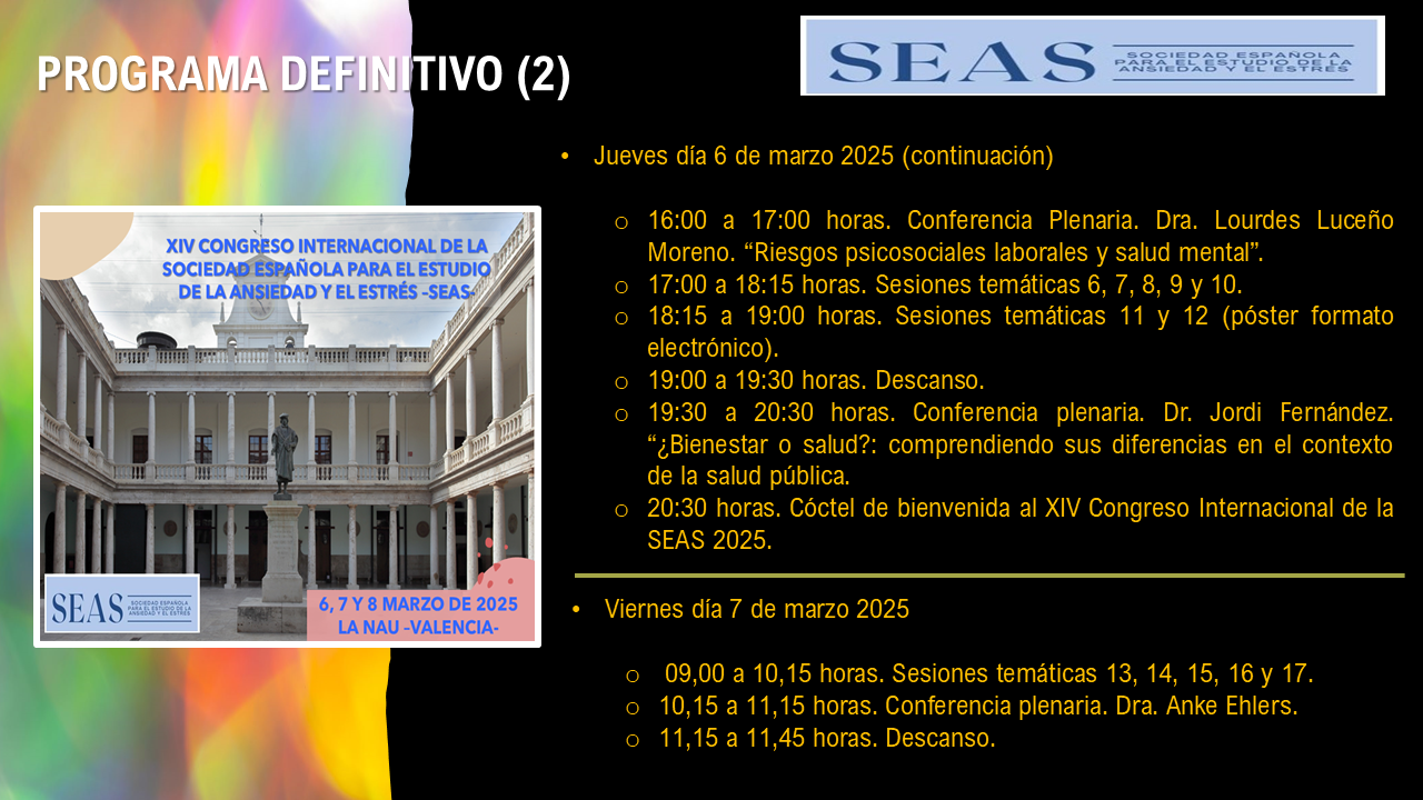IX Jornada de Emociones y Bienestar de la Sociedad Española para el Estudio de la Ansiedad y el Estrés